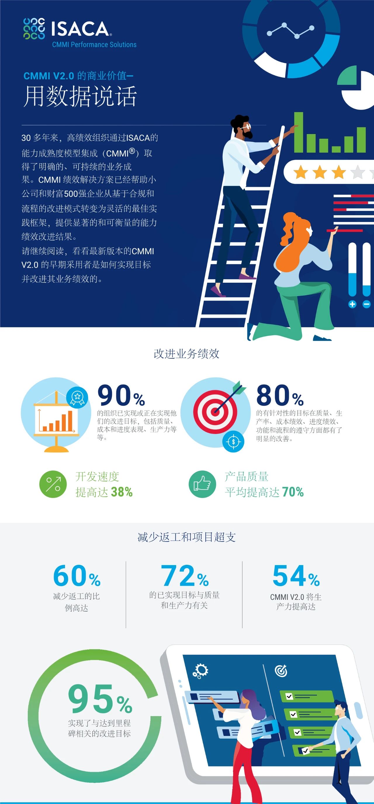 2023 Mar CMMI V2.0将助您将组织性能提升到一个新的水平 无论您的组织是否已经成功应用CMMI V1.3,现在都可以使用CMMI V2.0来构建能力并将其价值驱动力、标准和其他特性完美落地,以提升组织性能。CMMI V2.0通过集成的产品套件可将业务目标直接与运营和能力相关联,从而推动在时间、质量、预算、客户满意度和其他关键驱动力的改进并取得可量化的卓越表现。